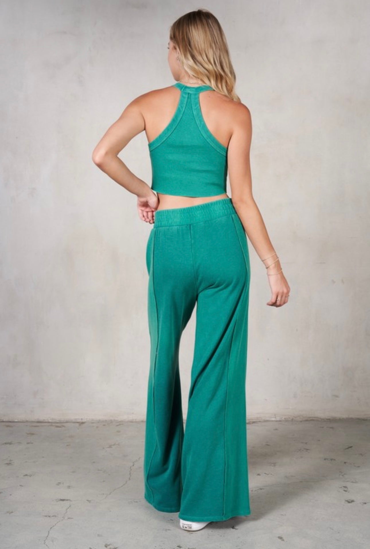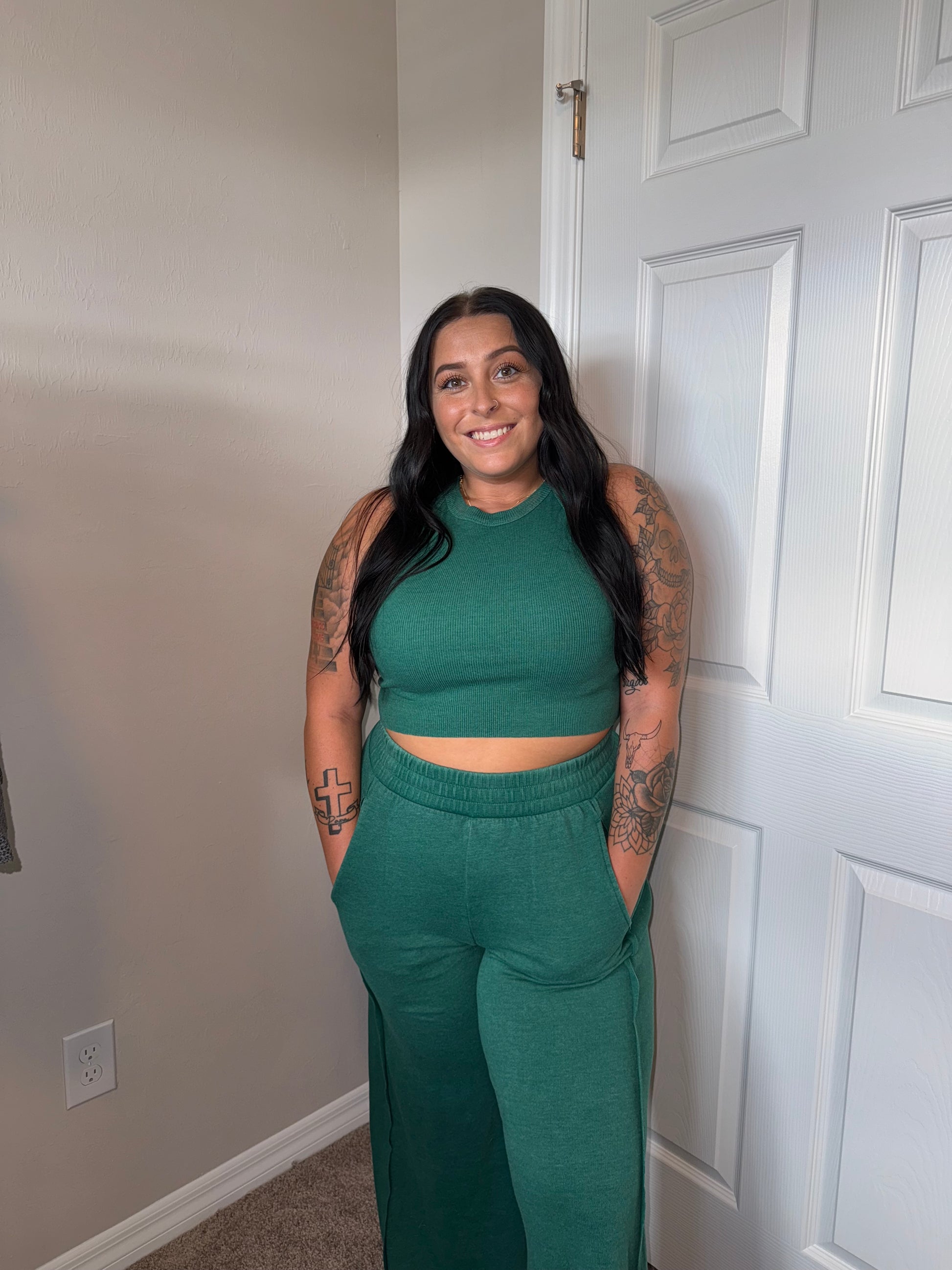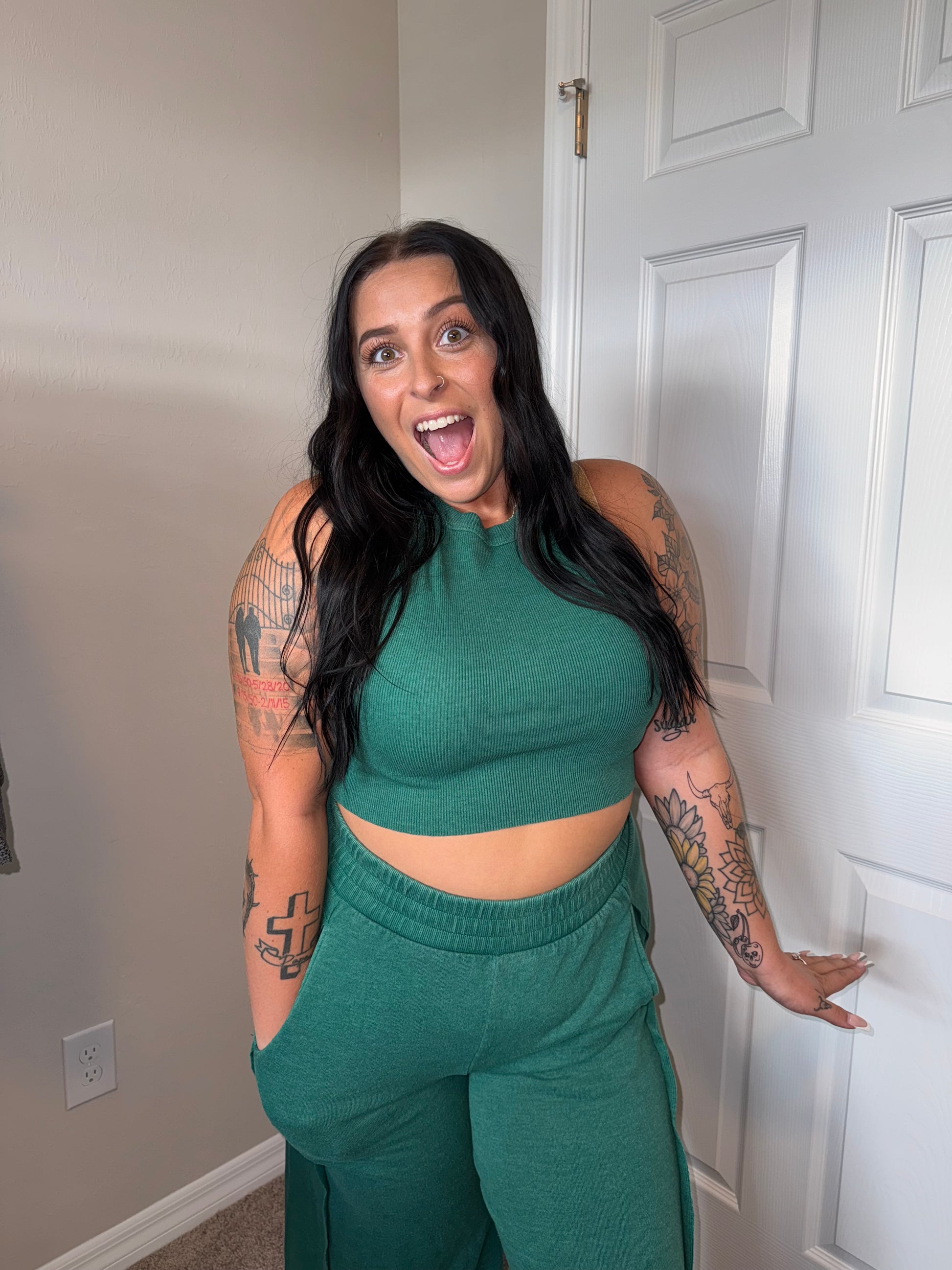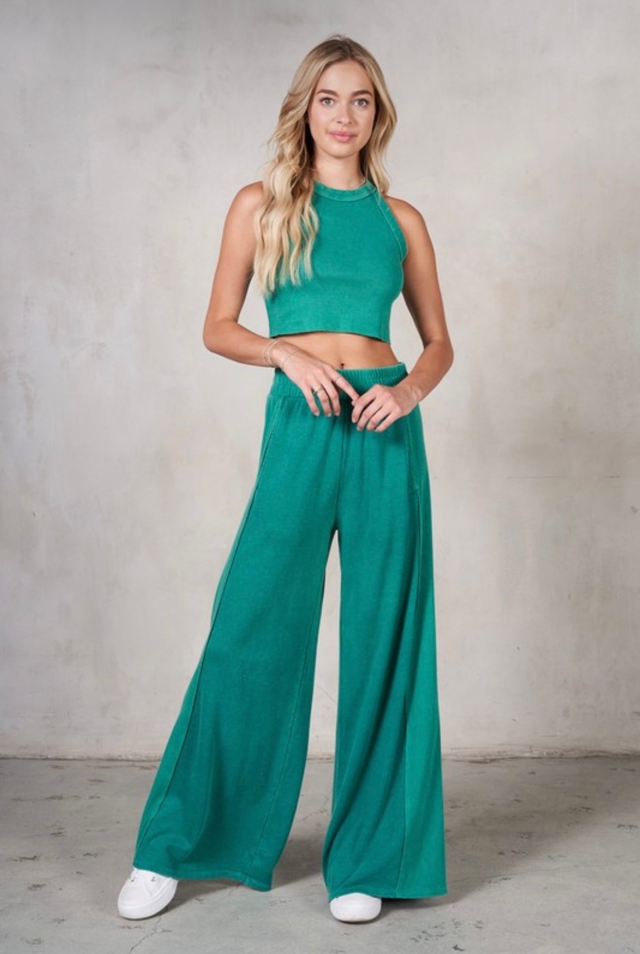 Get ready for every day with our Everyday Set in Kelly Green! This stylish set includes a halter neck tank top and wide leg bottoms, both in a beautiful green color. Stay comfortable and chic all day long.